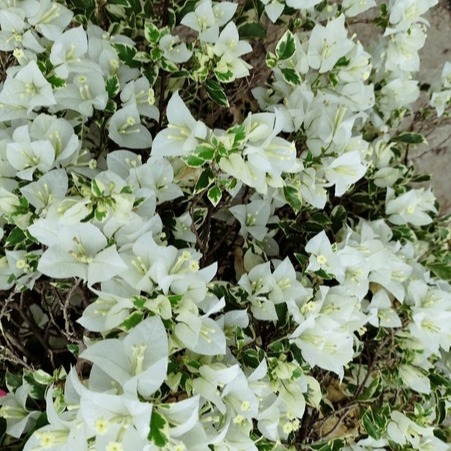 Anak Pokok Bunga Kertas Putih Daun Batik