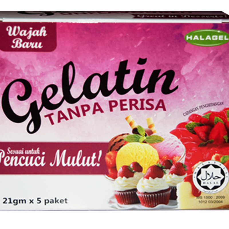 Gelatin Halagel® mengandungi serbuk protein berkualiti tinggi yang dihasilkan daripada rangkaian kolagen dari sumber tulang lembu yang halal. Gelatin dikategorikan sebagai kondisioner makanan, penstabil dan agen pemekat. Bersifat tidak mempunyai warna, bau mahupun rasa dan seringkali digunakan dalam menyediakan pelbagai jenis pemanis mulut seperti jeli, kek keju, yogurt, ais krim dan lain-lain.
