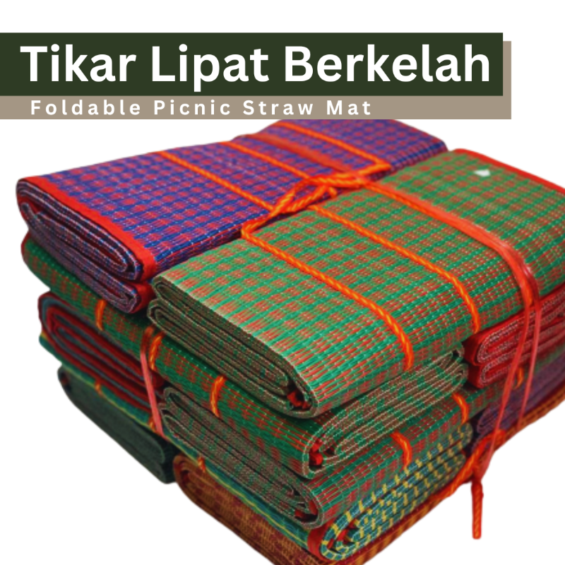 Foldable Picnic Straw Mat Tikar Lipat kalis air boleh ikat buat berkelah di tepi pantai sungai taman