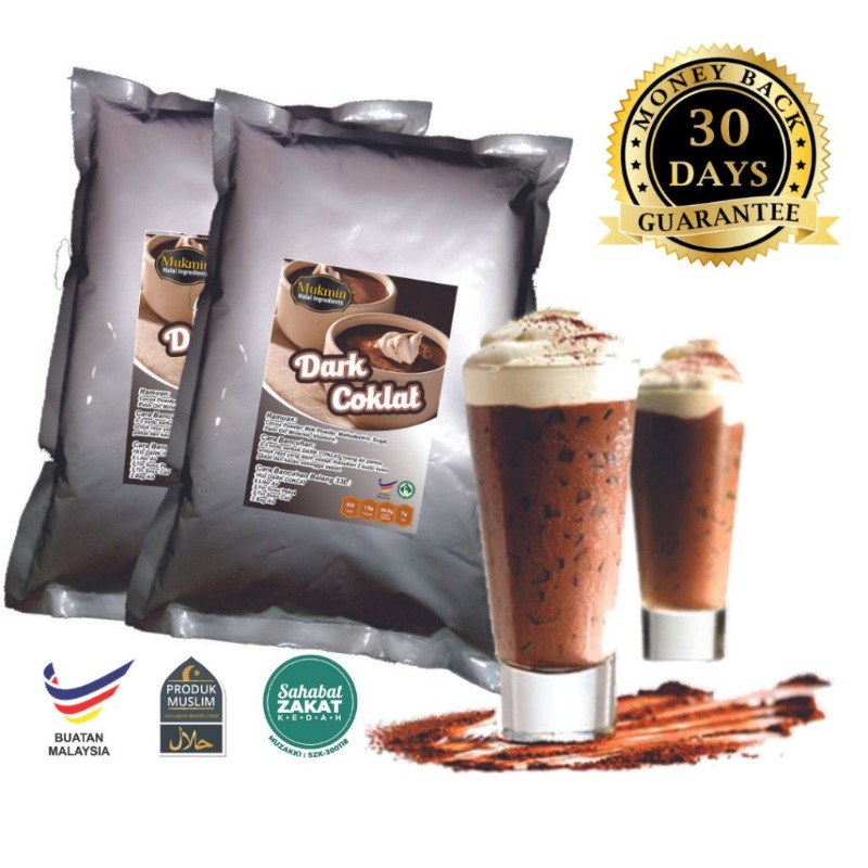 Dack Coklat minuman coklat yang cukup sedap dan berkhasiat, Sesuai untuk - Air Balang, - Ice Blended, - Air Kocak - Air Milkshake - Ice Cream Malaysia, Soft Ice cream, Hard Ice Cream - Bancuh minum panas atau sejuk PRODUK MUSLIM CARA PENYEDIAAN - Masukkan Dack Coklat 1 atau 2 sudu didalam gelas - Tuangkan air panas 100ml - 150ml - Kacau sehingga sebati - Sedia untuk Diminum (Sedap diminum dalam keadaan sejuk dan panas) atau - Masukkan Dack Coklat 1 atau 2 sudu ke dalam bekas shake - Tuangkan air sejuk 100ml - 150ml - Masukan ais ketul - Shake sehingga sebati - Sedia untuk Diminum Note: Nak lebih sedap tambahkan susu pekat semasa bancuh CARA BANCUHAN UTK AIR BALANG utk balang 23L 750g serbuk serbuk air minuman 3 ke 4 tin susu pekat 1 ke 2 tin susu sejat ais 1 bag air 3 Liter 1. masukkan 750g serbuk minuman kedalam bekas dan masukkan 1Liter air panas dan kacau sehingga sebati, 2. masulkan susu pekat dan susu sejat, kacau sehingga sebati. 3. masukkan 2Liter air lagi, dan kacau. siap sedia utk niaga. utk balang 33L 1kg serbuk serbuk air minuman (1pack) 5 ke 6 tin susu pekat 3 ke 4 tin susu sejat ais 2 bag air 5Liter 1. masukkan 1pack serbuk minuman kedalam bekas dan masukkan 3Liter air panas dan kacau sehingga sebati, 2. masulkan susu pekat dan susu sejat, kacau sehingga sebati. 3. masukkan 2Liter air lagi, dan kacau. siap sedia utk niaga PRODUK KELUARAN MUSLIM PENGIRAAN KOS DAN KEUNTUNGAN A) Satu Bungkus Powder ( 1 KG ) boleh bancuh BAse Flavour untuk Balang besar 33 liter B) Boleh menghasilkan sehingga 68 hingga 70 bungkus pek air yang berharga rm2.00 paling rendah atau rm2.50 untuk minuman bersusu. C) Habis satu balang boleh hasilkan jualan rm 140.00~ rm175.00 D) KOS SATU BALANG + Air Suam Panas 5Liter = RM1.00 + Serbuk Perisa x 1 = rm18.50 + Susu Pekat rm2.30 x 3 = rm6.90 + Susu Sejat RM3.20 x 2 = rm6.40 + Plastik bungkus rm0.04 x 70 = rm2.80 + Ais rm3.5 x 2 = rm7.00 TOTAL kos satu balang rm 42.60 Minimum Boleh UNTUNG rm130 satu balang , tidak termasuk repeat lagi 2 3 kali. Jika meniaga 10 balang yang nak bagi meriah . Bukan ker rm1300 sehari , tolak bayar tapak , orang kerja , duit minyak dan belanja budak kerja bukak puasa pun ada lagi.